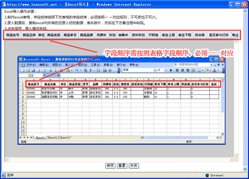 2.制作Excel商品資料模板,字段順序需按照下方的表格字段順序,必須一一對應(yīng),不可增減。