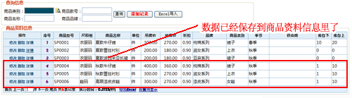 4.點(diǎn)擊【保存】按鈕,數(shù)據(jù)已經(jīng)保存到商品信息里了。