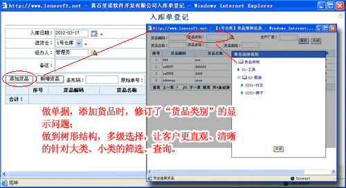 2.新增入庫(kù)單等單據(jù),添加貨品時(shí),修訂了“貨品類別”的顯示問題;