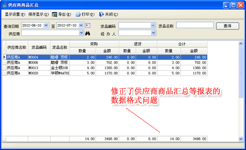 1.修正了供應商商品匯總、客戶商品匯總等報表的數據格式問題。