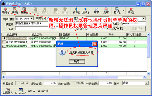 | 2.操作員無(wú)法刪改其他人單據(jù) |