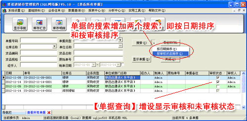 單據(jù)的搜索增加兩個(gè)搜索,即按日期排序和按審核排序