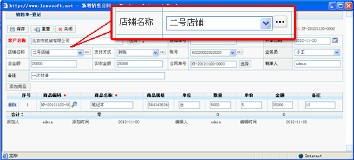 里諾客戶服務管理系統是一個可以充許多人導地同時使用的客戶銷售系統,如果您有多個店鋪,如何統計這些銷售的銷售情況呢?這就要求您在制做銷售單據時,把店鋪名稱記錄好。