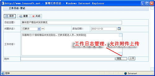售后服務模塊還能上傳附件,如果您的客戶發了一個word文檔給您,您可以把這個word文檔做為附件記錄下來。
