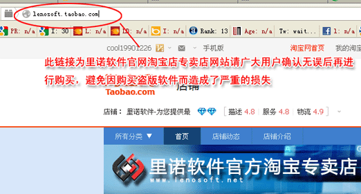 友情提醒:如今淘寶上賣的盜版、破解版的里諾軟件非常多,便宜的價(jià)格卻讓用戶出現(xiàn)了丟失數(shù)據(jù)之類的問(wèn)題因此造成了不小的損失,里諾軟件在感到痛心之于也請(qǐng)用戶在淘寶上購(gòu)買里諾軟件時(shí)認(rèn)準(zhǔn)里諾軟件官方淘寶專賣店 “購(gòu)買正式版的里諾軟件,您將享受專業(yè)的售后服務(wù)保障。因購(gòu)買盜版里諾軟件而造成損失的,里諾軟件是不提供售后服務(wù)的。
