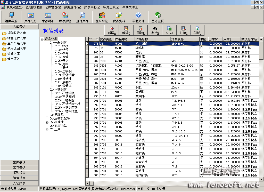 里諾倉庫管理系統是一款通用性極強的倉庫及貨物管理軟件,軟件適用于食品、服裝、保健品、電子、貿易、物資、化妝品、電器等工業、商業、貿易領域的企業。界面如下圖所示: