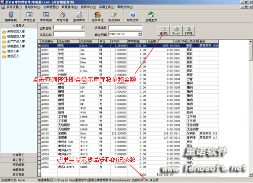 2 截止日期,程序默認是今天的日期,即查詢到今天為止的庫存數量,您也可以選擇一個歷史日期,這樣就能查詢任何一個時期的庫存數量了.
