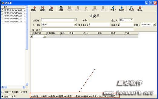 3.單據(jù)管理中新增快捷鍵功能,F(xiàn)2-新增,F(xiàn)3-編輯,F(xiàn)4-刪除,F(xiàn)6-保存,F(xiàn)7-取消,F(xiàn)8-前單,F(xiàn)9-后單,F(xiàn)10-打印,F(xiàn)12-關閉。