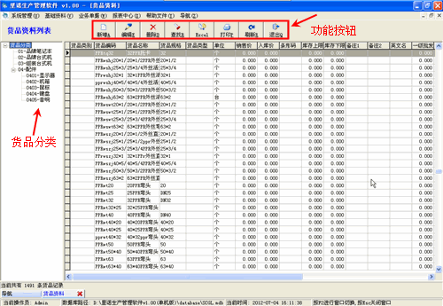 在貨品信息窗口中左邊是貨品類別,右邊列表中是該類別對應的貨品。在某一類別上點擊鼠標右鍵,可以新增類別,重命名和刪除類別。