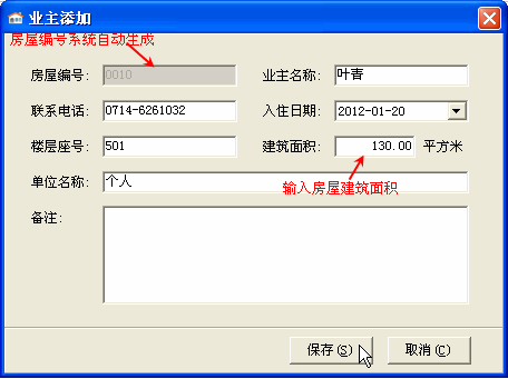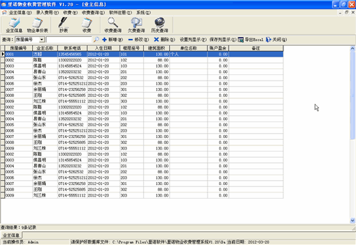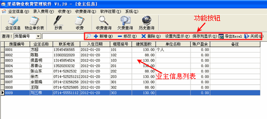 此處可登記、修改、刪除業(yè)主信息。也可將業(yè)主信息出EXCEL。