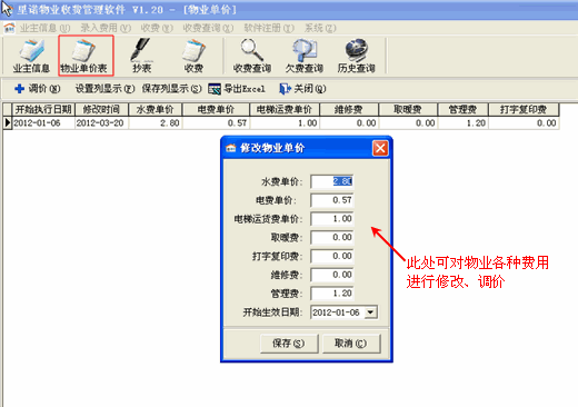 物業(yè)單價(jià):此處可以對(duì)物業(yè)收費(fèi)的單價(jià)進(jìn)行修改。