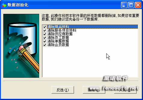 數據初始化是系統超級管理員對系統中過時的、無用的、多余的數據進行徹底刪除的操作,管理員只需在想刪除的數據項目之前的選擇框打勾(不想刪除的數據,點擊選擇框取消打勾便可),然后點擊確定就完成操作。