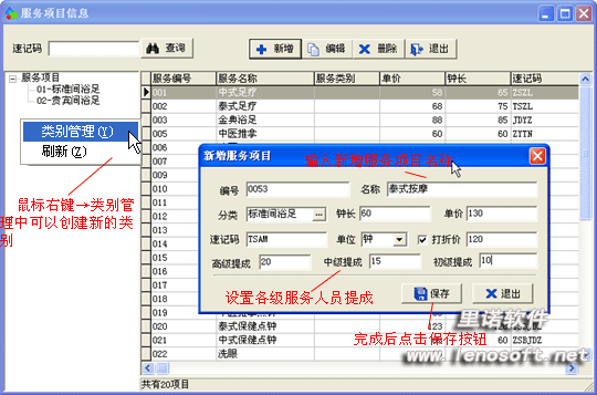 3.軟件可設置技師的輪牌提成與點鐘提成;